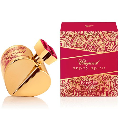 عطر ادکلن هپی اسپیریت فور اور شوپارد-Chopard happy spirit Forever عطر شرقی با رایحه گل های نفیس و با الهام از حنای عروس های هندی که نماد شادی، جشن و سرور و عشق می باشد، در سال 2016 میلادی توسط Alienor Massenet طراحی شد. بطری این عطر زنانه نیز به شکل قلب و به رنگ طلایی و زرشکی، تداعی گر ترکیب طلا و یاقوت سرخ می باشد و رایحه آن ادای احترامی به آداب و رسوم شرقی و عهد و پیمان مشترک است. عطر ادکلن شوپارد-چوپارد هپی اسپیریت فوراور-Chopard Happy Spirit Forever، عطری است زنانه، ساده و بسیار خوشبو که شروعی گرم و عسلی مانند از رایحه شکوفه های پرتقال با حس گل های سفید و همراهی حس شاداب دلنشینی از ماندارین دارد. با گذر زمان رایحه مرکباتی محو شده و رایحه نعنای هندی و فلفل صورتی به جمع روایح اضافه می گردند. رایحه میانی و پایه عطر رایحه ای شیرین، گلی با حس سفید و کمی تند و فلفلی است که حس پودری ضعیفی نیز به همراه دارند. شیشه ادوپرفیوم هپی اسپیریت فور اور-happy spirit Forever به شکل یک قلب طلایی طراحی شده است و روی در آن، دو نگین قرمزرنگ خودنمایی میکنند.