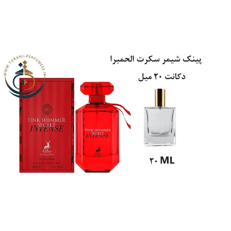 ادکلن “الحمبرا پینک شیمر سکرت اینتنس Alhambra Pink Shimmer Secret Intense” از خانوادهی گلی میوهای به شمار میرود و توسط شرکت “الحمبرا Alhambra” به بازار عرضه شده است. این عطر نمونهای از ادوپرفیوم “ویکتوریا سکرت بامبشل اینتنس Victoria’s Secret Bombshell Intense” میباشد. ترکیبات اصلی این عطر شامل گیلاس، گل صدتومانی و وانیل میشود.