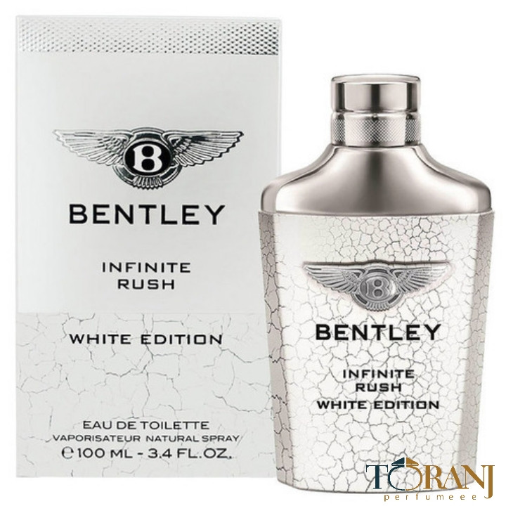 عطر ادکلن بنتلی اینفینیتی راش وایت ادیشن -BENTLEY INFINITE RUSH WHITE EDITION 100ML EDT عطری مردانه خوشبویی می باشد که در سال ۲۰۱۶ میلادی با غلظت ادوتویلت و در حجم ۱۰۰ میلی لیتری توسط طراح فرانسوی اهل گراس، Karine Dubreuil، به بازار عطر و ادکلن معرفی و عرضه شد.