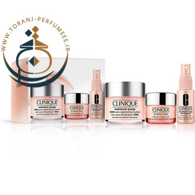 ست محصولات آبرسان Moisture Surge کلینیک (مویسچر سرج Clinique) حاوی سه محصول ویژه برای هیدراتاسیون پوستهای کم آب است. سه محصول موجود در این پک، شامل یک کرم آبرسان و مرطوبکننده، یک کرم دور چشم و یک اسپری آبرسان هستند. از این محصولات میتوان برای آبرسانی انواع پوست استفاده کرد تا شادابی و طراوت به چهره برگردد.