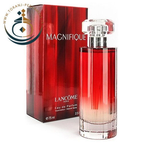 عطر ادکلن لانکوم مگنیفیک زنانه-LANCOME MAGNIFIQUE 75ML EDP عطری زنانه، رسمی و جذاب از برند فرانسوی لانکوم (لنکوم)-LANCOME می باشد که در سال 2008 میلادی با غلظت ادوپرفیوم و در اندازه 75 میلی لیتری توسط اولیویر کرسپ و جک کاوالیر طراحی و به بازار عطر و ادکلن تهران معرفی و عرضه شد.