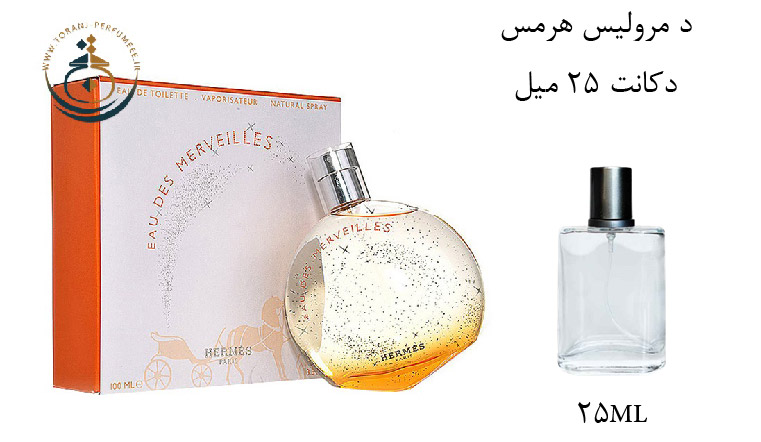 عطر ادکلن هرمس الکسیر دس مرولیس-HERMES ELIXIR DES MERVELLES EDP، عطری دلربا و روحبخش از برند هرمس-HERMES است که خاطره ای از اقیانوس و تلالو ستارگان را در ذهن تداعی می کند. این محصول با رایحه ای اسرار آمیز مخصوص خانم های مدرن و امروزیی است و در سال ۲۰۰۶ میلادی توسط طراح مشهور فرانسوی، آقای Jean Claude Ellena طراحی شد. عطر ادکلن هرمس الکسیر دس مرولیس-HERMES ELIXIR DES MERVELLES، عطری است شیرین، تلخ و صمغی و در عین حال نیمه شاداب، مرکباتی و دریایی که ترکیبی از پرتقال، امبرگریس و صمغها را ارائه می دهد. شیشه این عطر نارنجی رنگ و بسیار زیبا است طوری که چشم هر خانمی را به خود جلب می کند. رایحه ابتدایی عطر با بوی شیرین و کمی شاداب پرتقال آغاز می شود که حضور صمغهای درختی حس تلخ ملایمی به آن بخشیده اند. با گذر زمان حس صمغی قوی تر شده و پس از اضافه شدن نعنای هندی و بخور حالتی دودی، نسبتاً تند و تیز و در مجموع تلخ و شیرین به خود می گیرد که حسی دریایی مانند، کمی شور و نیمه شاداب نیز از امبرگریس نیز به همراه دارد.