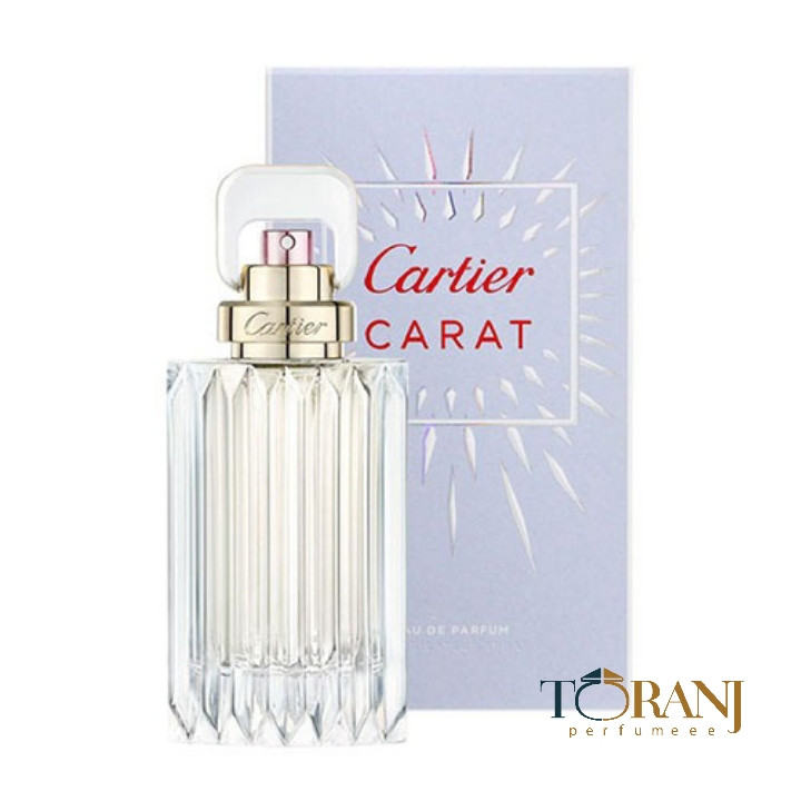 کارات-CARAT واحد وزن و سنجش جواهر و تفسیری از الماس است. خانم مسید لورنت-Mathilde Laurent طراح عطر ادکلن کارتیه کارات-Cartier CARAT EDP می گوید:” قصد ساختن عطری درخشان، پر جنب و جوش و سرزنده مانند الماس را داشتم.” ادوپرفیوم کارات-CARAT به عنوان یک گل سرشار از زندگی است؛ انفجاری از لذت و طراوت با مولکول های شادی و نشاط که سراسر از انرژی است. برای انجام این کار سازنده عطر تصمیم گرفت از یک تکنیک خاص که مشخصه یک الماس است، تقلید کند. بنابراین او ۷ گل رنگارنگ را انتخاب کرد که وقتی با هم ترکیب شدند یک گل تازه انتزاعی شکل گرفت. این ترکیب مانند رنگ های رنگین کمان نمایش داده می شود. این عطر زنانه الماس گونه در سال ۲۰۱۸ میلادی ساخته شد.