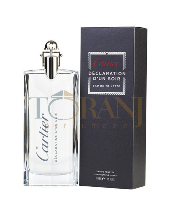 عطر ادکلن کارتیر دکلریشن دون سویر-Cartier DECLARATION D’UN SOIR عطری ادویه ای و چوبی، روحبخش، غیر منتظره و پر از فلفل! است. این عطر در سال ۲۰۱۲ میلادی توسط Mathilde Laurent با غلظت ادوتویلت طراحی و به بازار عطر و ادکلن عرضه شد. طراح آن درباره این عطر مردانه دلفریب می گوید:”برای این عطر موادی انتخاب کردم که قلب ها را نشانه می گیرد و مردان را برای ابراز احساسات پر شورشان تشویق می کند.” عطری که ادویه را به زندگی شما اضافه می کند و ضربان قلبتان را بالا می برد! عطر ادکلن کارتیر دکلریشن دون سویر-Cartier Declaration d’Un Soir، عطری است که با رایحه نیمه شیرین و نیمه شاداب گل رز ترکیب با رایحه فلفل و زیره سیاه آغاز می شود که حسی تلخ و ادویه ای و همزمان شاداب و گلدار و جذاب دارد. با گذر زمان رایحه گل رز کمی آرام شده و رایحه چوب صندل به ترکیب عطر اضافه می گردد. رایحه میانی و پایه عطر رایحه ای نیمه شیرین و تلخ از ترکیب چوب صندل و ادویه هاست که رایحه گل رز در کنارشان باعث لطیف تر شدن و متعادل کردن تلخی چوب ها و ادویه ها می گردد.