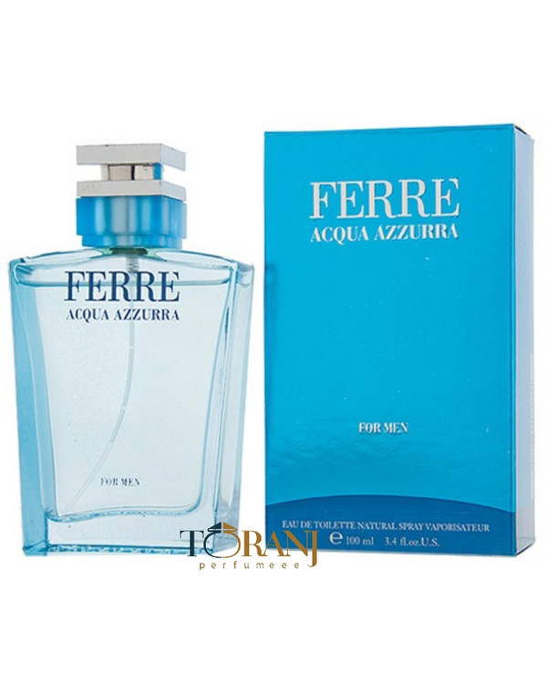 عطر ادکلن جیانفرانکو فره آکوا آزورا-FERRE ACQUA AZZURRA EDT با الهام از جزیره جادویی و مرموز کاپری در کشور ایتالیا ساخته شده است. جزیره ای بسیار وسوسه انگیز با طبیعتی ناب و چشم نواز در میان آبهای نیلگون و شفاف به مانند این عطر که با رایحه های دریایی غنی شده است. این عطر مردانه لطیف و شاداب در سال ۲۰۰۸ میلادی توسط Mark Buxton طراحی شد. عطر ادکلن فره آبی-آکوا آزورا-Gianfranco Ferre Acqua Azzurra، عطری است خنک و شاداب که شروعی سبز، گیاهی و نیمه شیرین و ترکیبی از رایحه اسطوخدوس و مرکبات دارد که ساده و در عین حال خوشبو و بی آزار است. پس از گذشت زمان کمی رایحه زنجبیل به عطر اضافه می گردد؛ حضور زنجبیل حس فلفلی و گرم ملایمی به ساختار مرکباتی و گیاهی عطر می دهد تا رایحه را مردانه تر و جذاب تر و هم زمان پیچیده تر کند.