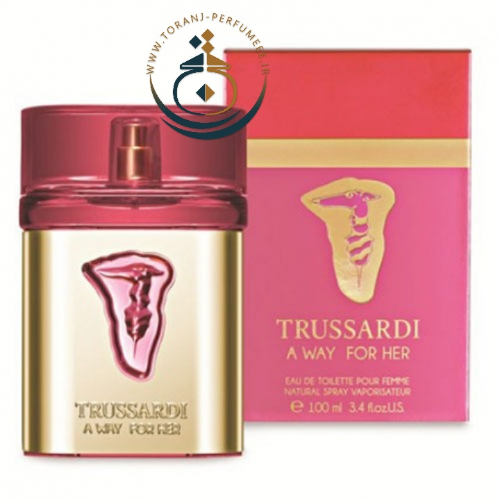عطر ادکلن تروساردی ا وی زنانه-TRUSSARDI A WAY FOR HER EDT، یک عطر گلی و شرقی است که در سال ۲۰۱۴ میلادی توسط Lucas Sieuzac و David Apel طراحی و با غلظت ادوتویلت به بازار عطر و ادکلن های اورجینال عرضه شد. یک راه… یک سفر… یک نگرش! “این عطر داستان یک زن و مرد جوان است که در دنیای خود غرق شده و بی توجه به یکدیگر به سمت مقصد دور و ناشناخته خود در حرکتند. مسیر آنها هرچند ممکن است متفاوت و مخالف هم باشد، امّا شباهت هایی در این سفر هست که سرنوشت، آنها را به هم گره می زند. آنها به دنبال مسیری برای یافتن یک احساس جدید هستند؛ یک رویای جدید که انگیزه زندگی به آنها بدهد و این استعاره ای از سرنوشت است. سرنوشتی که آنها را به هم پیوند می دهد.” چهره تبلیغاتی این عطر Jena Goldsack مدل انگلیسی می باشد. عطر ادکلن تروساردی ا وی زنانه-Trussardi A Way، برای روزهای گرم تابستانی خلق شده است. این محصول که در طبقه گلی و شرقی قرار دارد با رایحه ای از ترنج تازه، هلو آبدار و چای سفید آغاز شده که بعد از گذشت نیم ساعت به قلب شیرینی از گل های مریم، یاس و بوته یاسمن می رسد. این مواد بر روی بیس گرمی از خس خس، مشک و وانیل استوار می باشند. رایحه غالب آن چای و ترنج بوده که بسیار خاص و فریبنده است و هر بانویی را جلب خود می کند. بطری این عطر، خوشدست و لوکس طراحی شده و موردپسند بانوان امروزی است. روی بطری، نشان تروساردی-TRUSSARDI و نام ا وی فور هر–A Way for Her بهصورت برجسته دیده میشود. درپوش بطری رنگی قرمز دارد و به خوبی طرح کلی بطری را کامل کرده است.