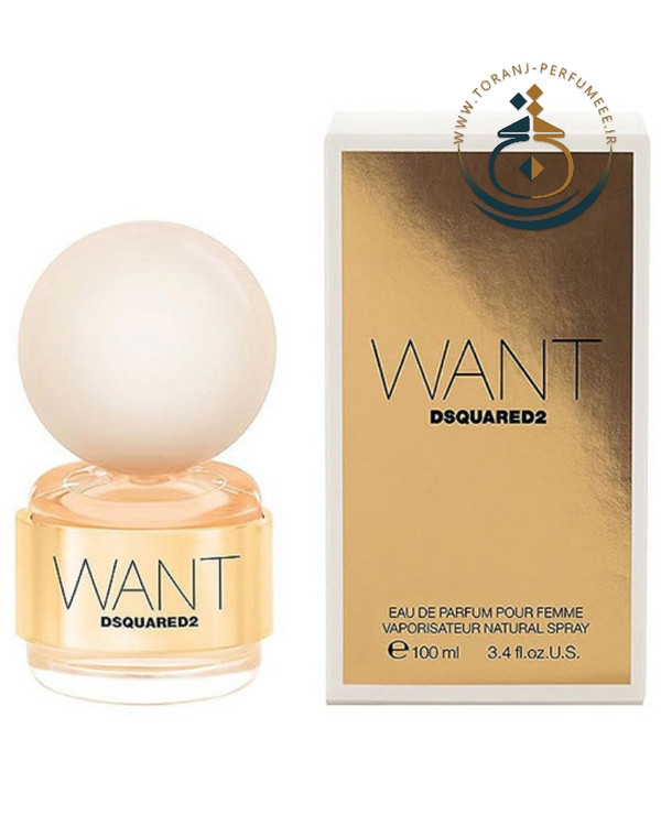 عطر ادکلن دسکوارد وانت پور فم-DSQUARED WANT POUR FEMME EDP عطری کاملاً زنانه و یک نام جدید در برند دیسکوارد-DEQUARED به شمار می رود. Dan راجع به آن می گوید:” دختر ما همواره با اعتماد به نفس است! اکثر کمپین های تبلیغاتی برای برجسته نشان دادن زیبایی زنان ساخته می شوند؛ امّا برای ما هدف ماورای زیبایی است”. این عطر در سال ۲۰۱۵ میلادی توسط Aurelien Guichard طراحی و به بازار عطر و ادکلن های اورجینال راه یافت. عطر ادکلن دیسکوارد وانت-DSQUARED Want، مخصوص دخترانى است که داراى اعتماد به نفس و زیبایی مى باشند. عطر دسکوارد وانت-DSQUARED WANT دارای رایحه ای گلى–شرقى است و نت هاى اولیه آن با نارنگى، زنجبیل و فلفل صورتى آغاز مى گردد؛ در میانه با عطر گل رز دمشقى، گل آفتاب گردان و شکوفه پرتقال ادامه مى یابد و در پایه داراى رایحه وانیل ماداگاسکار ، وانیل خالص و چوب بنفشه مى باشد. بطری Want بسیار ظریف و زنانه طراحی شده و با توجه به حجم ۱۰۰ میلیلیتری این عطر، بههیچوجه بزرگ در نظر گرفته نشده است. اصلاً شاید همین ویژگی، یکی از دلایل محبوبیت و فروش خوب این عطر در سطح دنیا باشد. روی شیشه، نام وانت-Want و نشان تجاری دسکوارد–DSQUARED با رنگ تیره چاپ شده و خودنمایی میکند. درب بطری با اندازه بزرگ شکل کرویاش، بهخوبی روی شیشه سوار شده است.